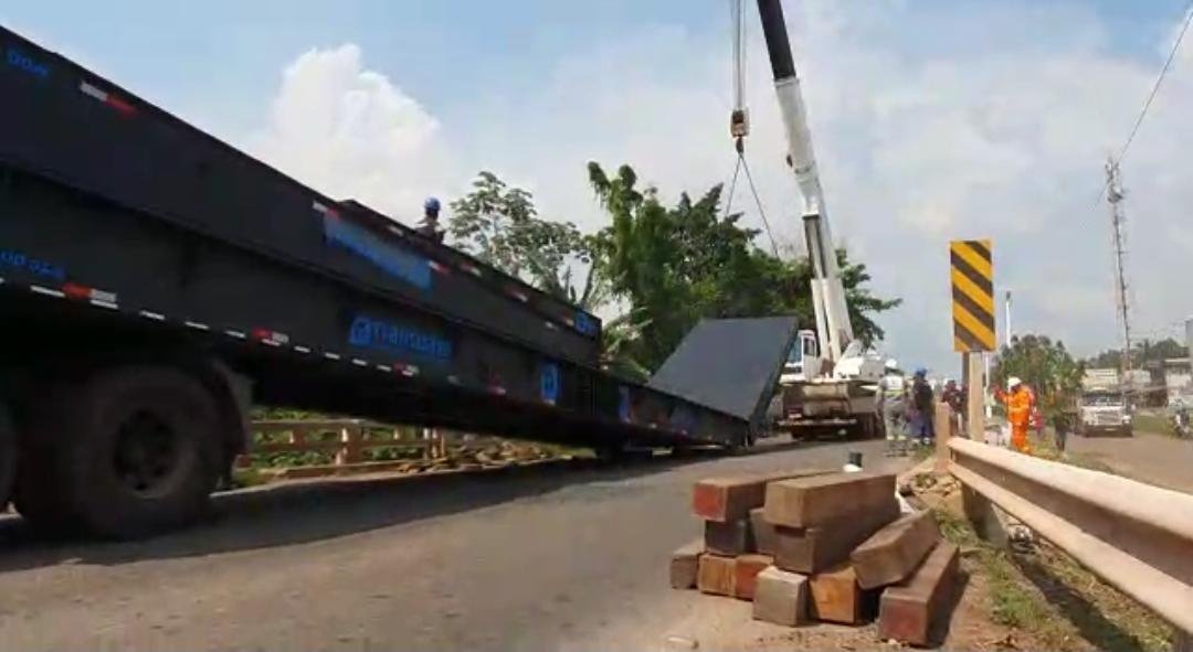 O equipamento está sendo conduzido do Porto do Itaqui em São Luís/MA pela BR-135 até o município de Santo Antonio dos Lopes/MA. O peso da turbina é superior a 360 toneladas, o que exige a instalação de pontes móveis sobre as pontes de concreto. A previsão é que o trajeto de 300 quilômetros entre as duas cidades seja realizado em quinze diasA operação de transporte de uma mega turbina geradora de energia, de São Luís do Maranhão até o município de Santo Antonio dos Lopes/MA, está sendo um grande desafio para as equipes de logística, que trabalham na operação. A equipagem envolve engenheiros, técnicos, policiais rodoviários federais, dentre outros profissionais. Nos três primeiros dias os deslocamentos ocorreram no período diurno, e desde então, o transporte vem sendo realizado durante a noite, das 23h às 05h da manhã do dia seguinte. Esta foi a maneira encontrada que menos impacta o deslocamento dos usuários da BR-135.A turbina e o transporte até o MaranhãoA turbina produzirá energia a partir do uso de gás natural, produto combustível encontrado fartamente no estado. O equipamento, que pesa mais de 360 toneladas, foi produzido nos EUA e chegou ao Maranhão embarcado no navio BBC Echo. O embarque aconteceu no Porto de Albany, no dia 13 de outubro e chegou no Porto do Itaqui, em São Luís, no dia 23 de outubro. Desde então os responsáveis pelo transporte se mobilizam para definir com a PRF e outras autoridades a logística de deslocamento pela BR-135.*O percurso até Santo Antonio dos Lopes*A parte mais difícil de transporte da turbina geradora de energia provavelmente não foi dos Estados Unidos ao Brasil. No Maranhão, a BR-135 é a única ligação terrestre entre a Ilha de São Luís e o continente. Somem-se outros desafios: a rodovia só é duplicada nos primeiros 50 quilômetros; a soma do peso da turbina, mais o conjunto que a transporta é superior a seiscentas e cinquenta toneladas e a maioria das pontes de concreto não suportam tanto peso.*A logística*A combinação possui 106 metros de comprimento, excedendo em muito os limites regulamentares de tamanho, largura, altura e, especialmente, de peso, cuja distribuição foi para dezenas de eixos e cerca de 340 pneus. Todo percurso é realizado com o batedores da Polícia Rodoviária Federal, que garante a segurança, a passagem do comboio e realiza a abertura e o fechamento da via quando necessário.Vários são os profissionais das diferentes áreas envolvidas na operação. São engenheiros, técnicos, operadores, condutores e vários outros empregados na logística para que tudo ocorra conforme o programado.A partidaA operação de transporte da turbina começou na manhã do dia 27 de novembro, quando saiu do Porto do Itaqui em São Luís, se deslocou pelo acesso da BR-135, passando pela Vila Maranhão até chegar em Pedrinhas por volta do meio dia. Logo em seguida, às 13h30, deixou a Unidade Operacional da PRF e partiu em direção ao Estreito dos Mosquitos.Dezenas de pontes de concreto no percursoLevar a imensa carga até o destino requer a transposição de dezenas de pequenas pontes estreitas, de concreto, existentes no percurso até Santo Antonio dos Lopes.O primeiro desafio foi passar na ponte sobre o Estreito dos Mosquitos, ou ponte da Estiva, que dá acesso ao continente. O local foi fechado para outros veículos e a combinação passou lentamente. Segundo engenheiros observadores, o peso provocou o recuo da ponte em cerca de 30cm. Após a passagem o trânsito continuou restrito por cerca de cinco minutos enquanto aguardava a ponte voltar à altura original. A oscilação da ponte é um fato normal previsto quando do projeto e construção da mesma.No primeiro dia, viajando em uma velocidade média de 7km/h, o comboio estacionou no km 47, povoado Peris de Cima. No dia seguinte passou pela via lateral ao viaduto de Bacabeira/MA. Desde então o deslocamento diário foi sendo drasticamente reduzido devido às dezenas de pontes existentes no caminho.Tecnologia inédita no mundoNa complexa operação, a empresa responsável utilizou uma tecnologia apresentada como inédita no mundo, chamada pelo supervisor de transporte como *sobreponte metálica modular*. O equipamento é uma ponte metálica instalada sobre as pontes de concreto para evitar que as mesmas sejam danificadas. Cada operação de montagem e desmontagem da sobreponte metálica modular demora cerca de cinco ou seis horas.A título de exemplo, as sobrepontes aplicadas na Europa são formadas por partes de metal e complementadas com peças de madeira. Elas são transportadas totalmente desmontadas, o que demora mais tempo para a realização da operação. A sobreponte utilizada na BR-135, por outro lado, é uma peça completa, dobrável, que leva menos tempo para manusea-la. Outra vantagem é que a sobreponte metálica modular não se apoia na ponte de concreto, o que protege esta de desgaste.Não fosse o ganho tecnológico a operação até o destino duraria mais tempo.Deslocamento noturnoA partir do dia 30 de novembro o deslocamento da turbina passou a ser realizado em período noturno, das 23h às 5h da manhã.O deslocamento a ser iniciado as 23h desta terça-feira, dia 1⁰ de dezembro, deverá seguir do km 84 até o km 85 no Pátio da UOP da PRF de São Francisco, um percurso de apenas 01 km.Os deslocamentos ficaram mais curtos devido a grande quantidade de pontes. A transposição de cada uma demora entre cinco e seis horas.A previsão de chegada a Santo Antonio dos Lopes é dia 11 de dezembro.