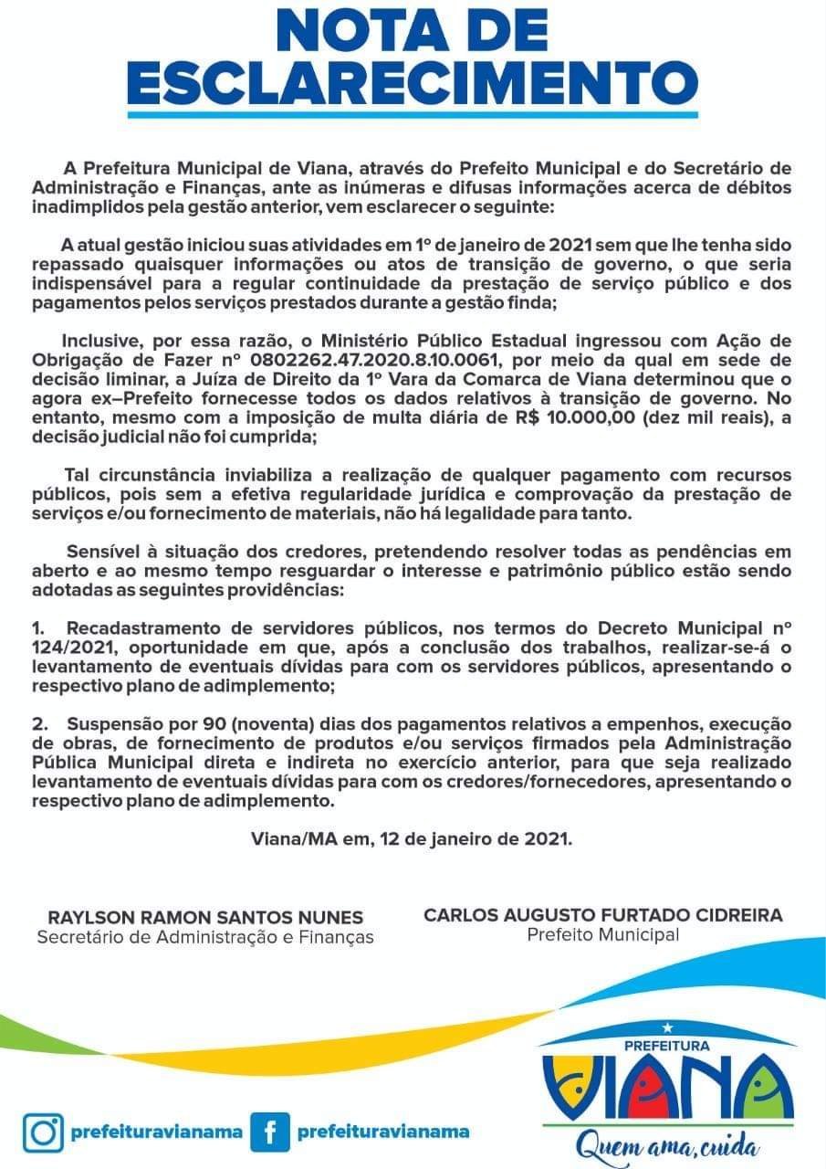 Sobre os débitos da Prefeitura de Viana, quem está mentindo: Carrinho ou Magrado?