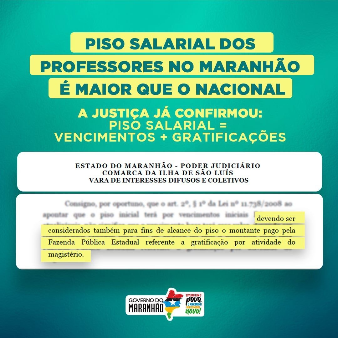 Essa decisão não deixa dúvidas: o piso salarial dos professores da rede estadual do Maranhão é bem maior que o nacional, seja de 40 horas ou de 20 horas.