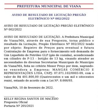 O prefeito de Viana segue rindo dos órgãos de fiscalização ao realizar licitações com valores absurdos.