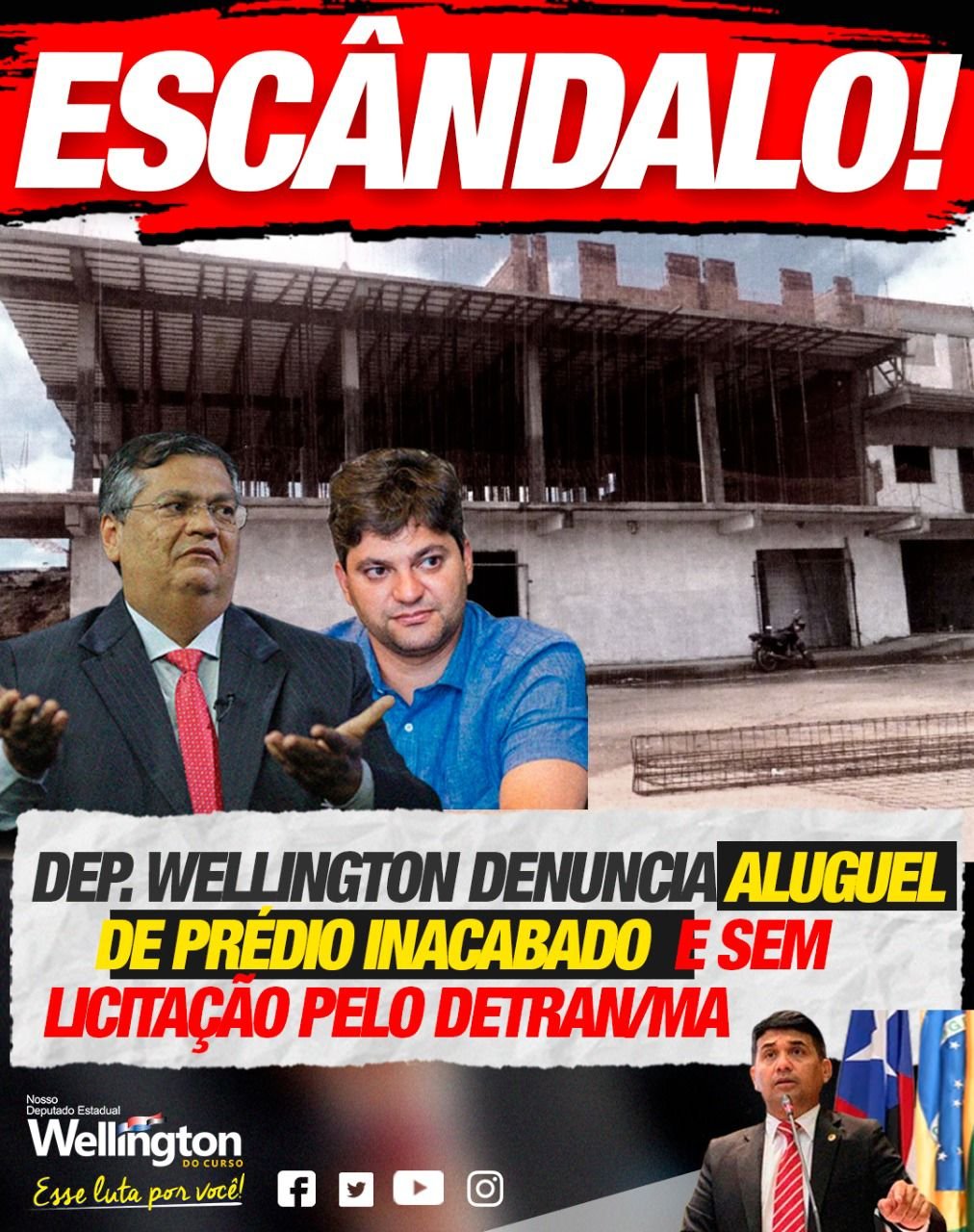 Durante a sessão plenária desta terça-feira, o deputado estadual Wellington do Curso utilizou a tribuna para fazer mais uma denúncia envolvendo a gestão do diretor Francisco Nagib no Departamento Estadual de Trânsito do Maranhão – DETRAN/MA. De acordo com o parlamentar, dessa vez, foi celebrado um contrato de aluguel, sem licitação, com a empresa Oceanos Investimentos Imobiliários Ltda referente a locação de um prédio inacabado para funcionamento de pátio de vistoria de veículos de grande porte.