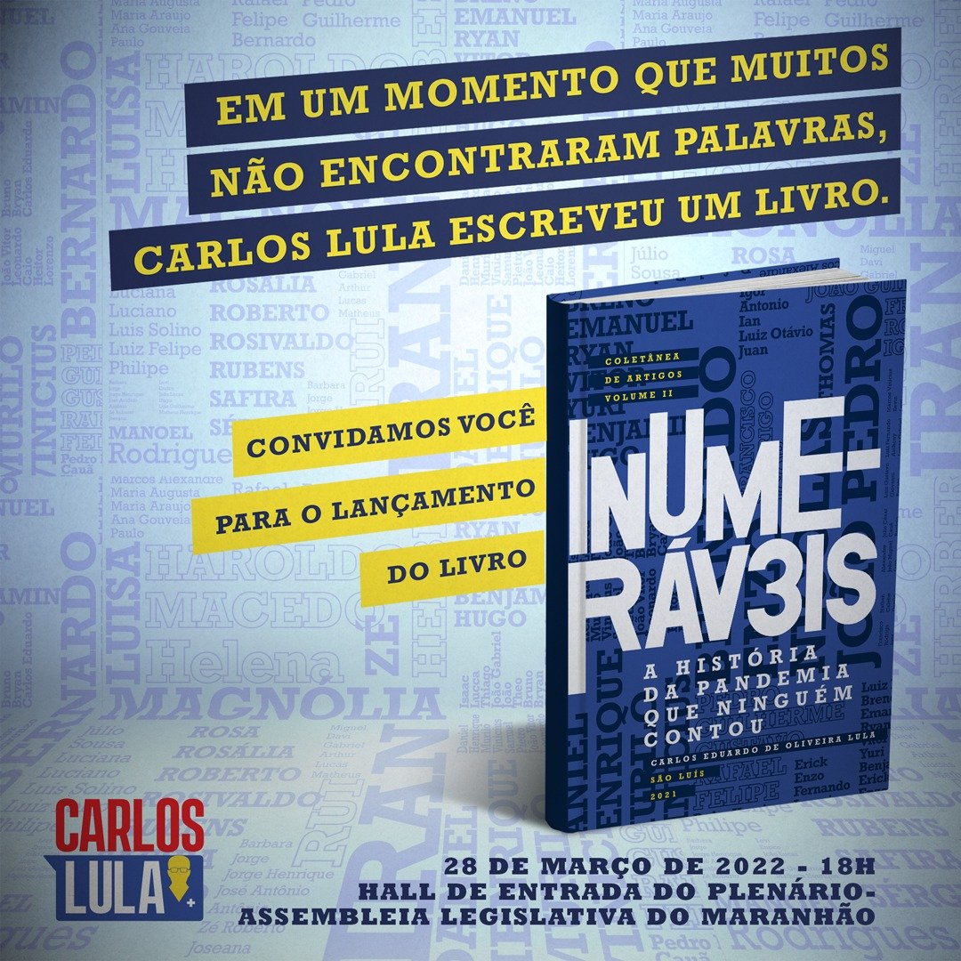 Carlos Lula, secretário de Estado da Saúde do Maranhão e presidente do Conselho Nacional de Secretários de Saúde (Conass), um dos nomes de maior destaque no enfrentamento da pandemia, oferece ao público um novo livro: Inumeráveis – A história da pandemia que ninguém contou.