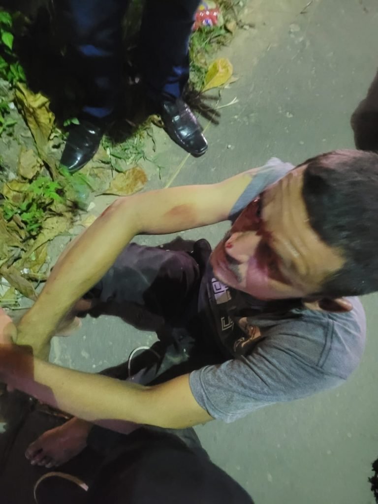 Importante ressaltar, que, nesse momento, osuspeito já se encontrava com diversas lesões no rosto causado por populares.