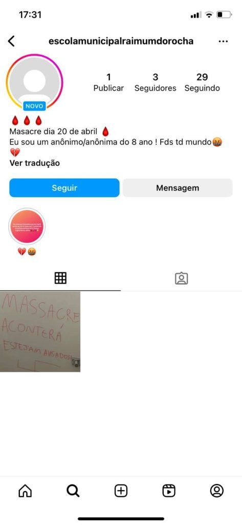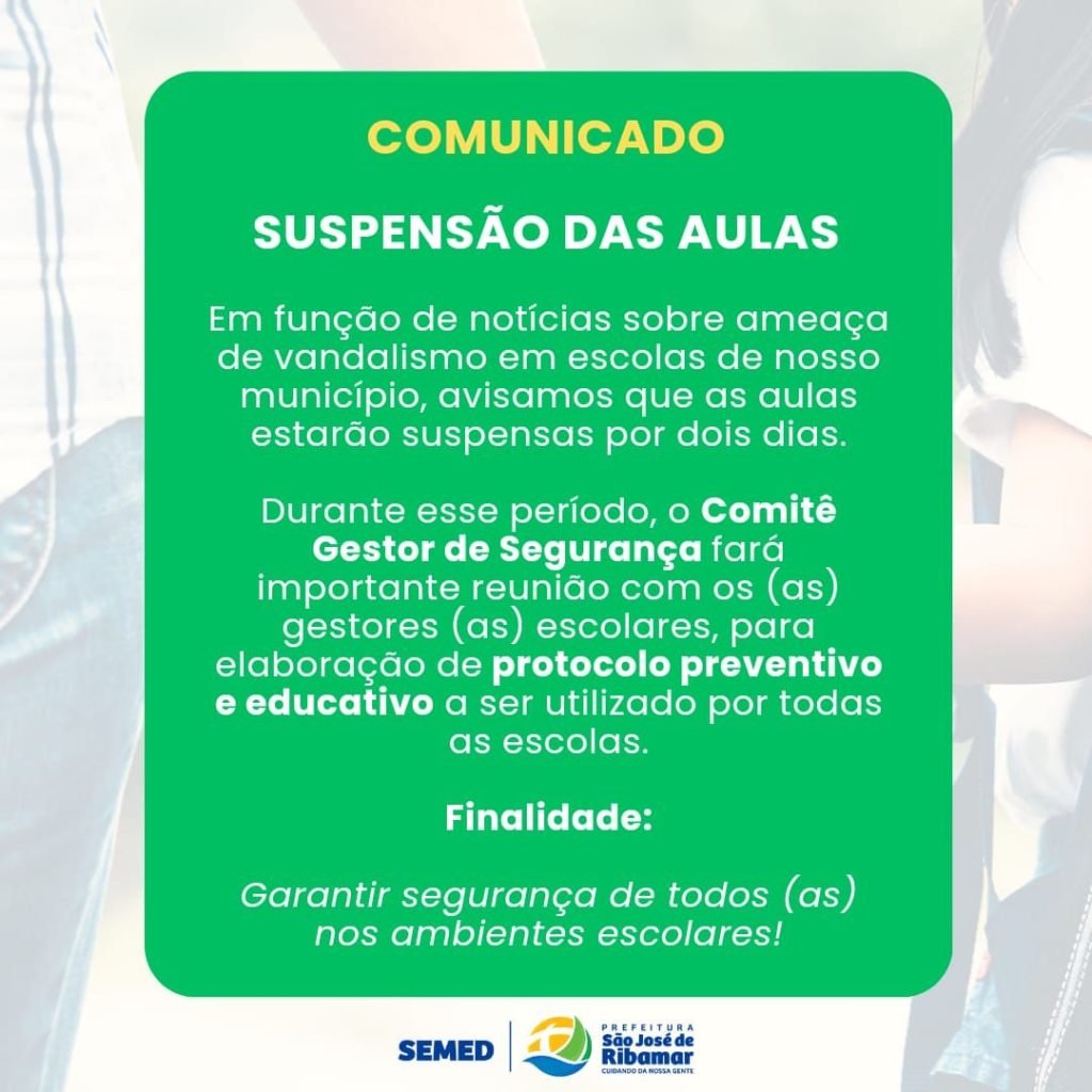 Após ameaças feitas por meio de uma conta do Instagram, a secretaria municipal de educação, Conceição Leite, resolveu suspender as aulas por dois dias em toda rede municipal.