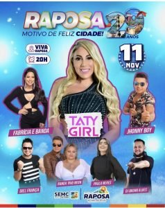 “DEFIRO A TUTELA DE URGÊNCIA pleiteada para determinar a imediata suspensão/cancelamento da realização do show artístico da cantora TATY GIRL e outros, previstos para os dias 10 e 11 de novembro de 2023, no Município de Raposa, bem como que os requeridos abstenham-se de efetuar quaisquer pagamentos e transferências financeiras decorrentes do contrato estabelecido para a contratação dos artistas ou mesmo de outra atração artística dessa magnitude.” Decide a juíza.