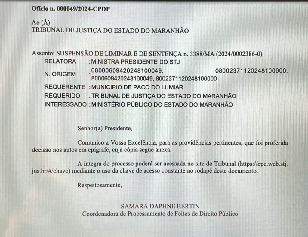 O município de Paço do Lumiar garantiu vitória no Supremo Tribunal de Justiça na tarde deste domingo (14), e decisão da Ministra Maria Thereza de Assis Moura entendeu que o cancelamento do show de Vitor Fernandes traria prejuízos à população e aos comerciantes locais, que se prepararam antecipadamente para a festa de comemoração aos 63 anos do município.
