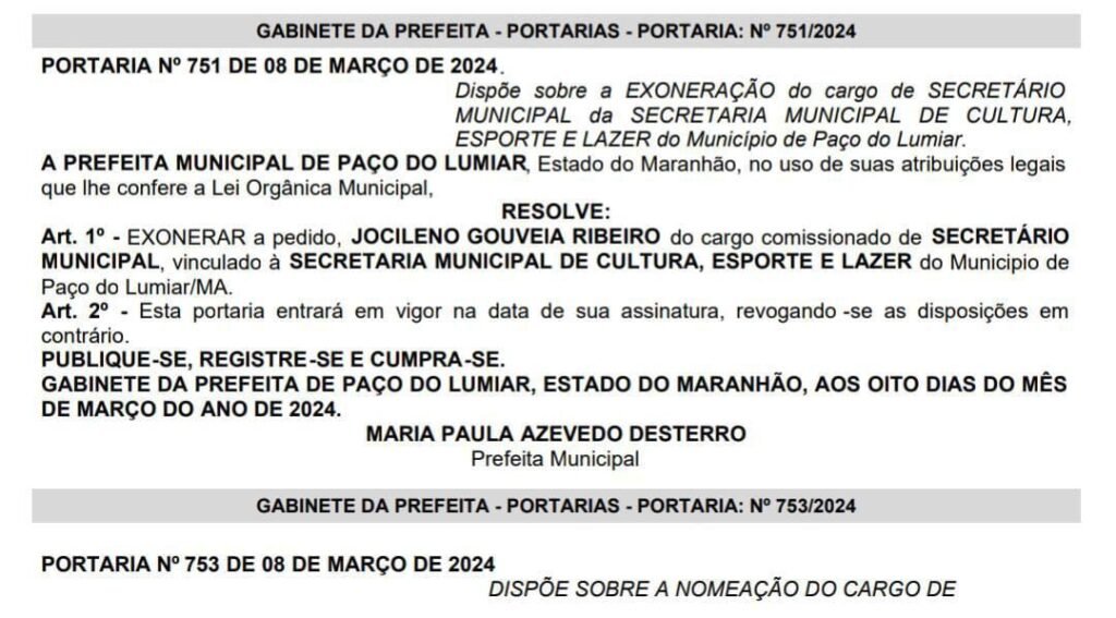 O Secretário de Cultura do município de Paço do Lumiar, Leno, foi exonerado pela prefeita Paula da Pindoba, causando surpresa e críticas entre os aliados.