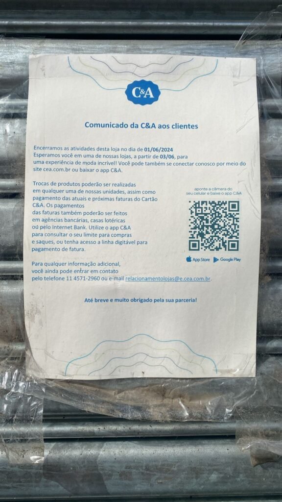 Após 24 anos, uma nova loja fecha as portas no endereço 290 a 298 na Rua Grande, a C&A encerrou suas atividades no último dia 1º de junho. Antes da gigante do vestuário brasileiro, outra varejista esteve no local que veio a falência, a icônica Mesbla que fechou as portas em 1999. Com o fechamento deste grande estabelecimento fica exposta a decadência comercial do Centro de São Luís.