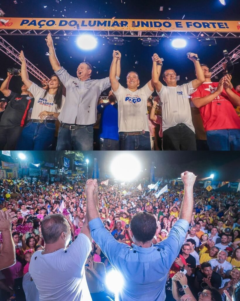 Por fim, Fred agradeceu à multidão presente e disse que tinha fé que, no dia 6 de outubro, um novo futuro seria escrito para Paço do Lumiar.