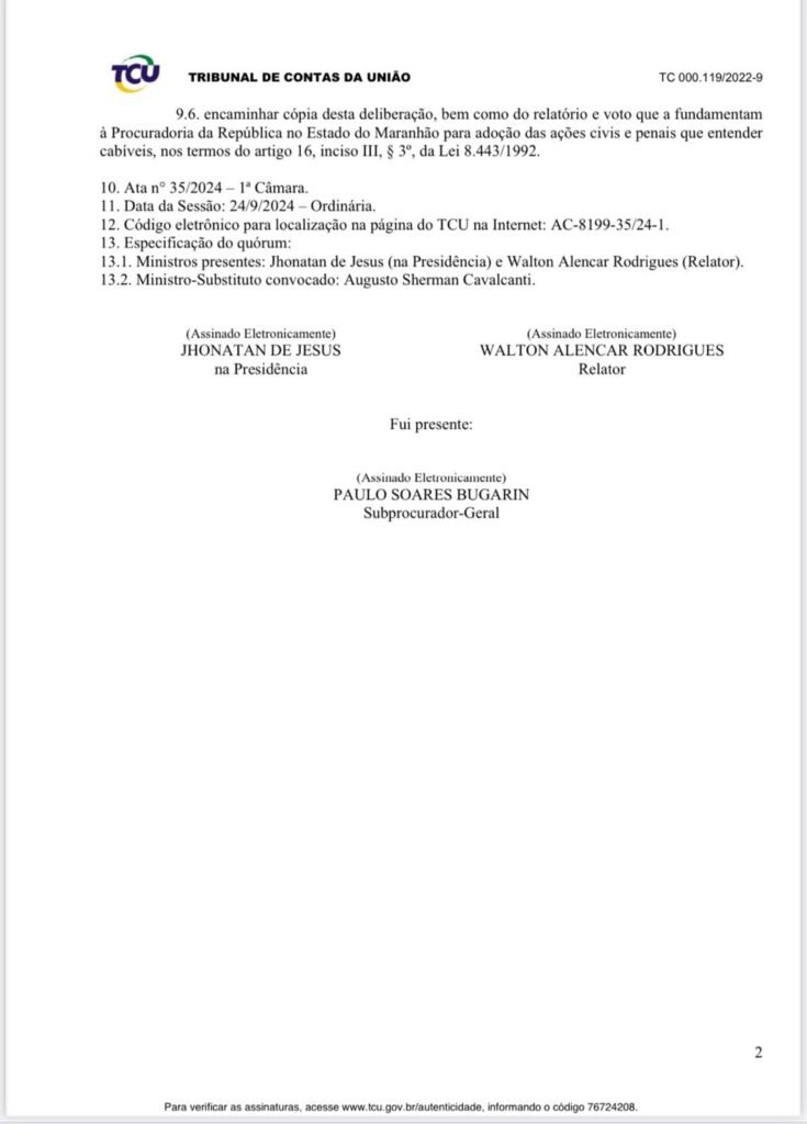 No dia 24/09/2024, o Tribunal de Contas da União (TCU) publicou (acordão um julgamento que revelou um desvio de R$ 285.903,83, atribuído a Raimundo Lidio, no cargo de prefeito no ano de 2014. A empresa Agepres Serviços e Participações Ltda., contratada para um projeto de esgotamento sanitário, também foi responsabilizada. Mas o que torna o caso ainda mais escandaloso é que a Agepres pertence a Arnaldo Brandão Neves Junior, conhecido como Arnaldinho, um poderoso empresário de Tutóia – MA que tem fortes ligações com Lidio, conhecido por seu império de diversas empresas na região.