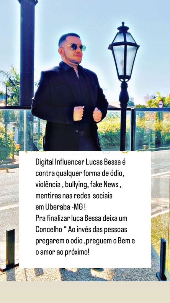 Lucas Bessa influencer faz denúncias contra o Instagram criminoso @fogonoparquinhouberaba que foi criado para disseminar ódio, violências, calúnias, difamações, ameaças de mortes e práticas de crimes contra pessoas da cidade de Uberaba e cobra