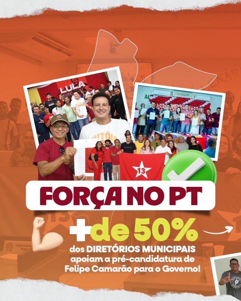 Mais de 120 diretórios municipais do Partido dos Trabalhadores já declararam apoio a Felipe Camarão como pré-candidato ao Governo do Maranhão, pela sigla. O vice-governador maranhense tem recebido o apoio tanto dos dirigentes municipais, quanto da militância, que vêm reforçando a importância do seu nome como representante do Partido, para as eleições de 2026.