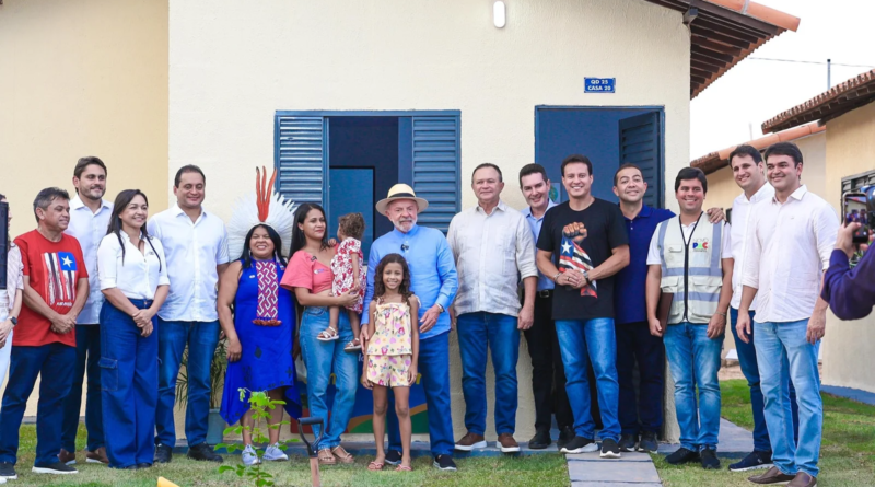 Após a cerimônia de entrega de unidades do Minha Casa, Minha Vida nesta segunda-feira(6) em Imperatriz, o presidente Lula reuniu o governador Carlos Brandão (PSB), o vice-governador Felipe Camarão (PT) e membros do grupo brandonista e dinista para uma foto oficial.