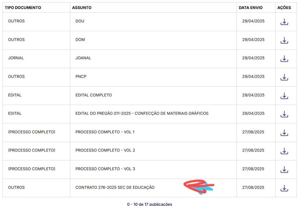 A empresa Artprint, com atuação modesta nas redes sociais, pouco mais de 400 seguidores no Instagram e estrutura típica de gráfica rápida, aparece como vencedora do Pregão Eletrônico nº 011/2025, processo conduzido pela Secretaria Municipal de Administração, Planejamento e Finanças.